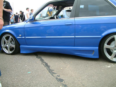 Then you have the Max wide arch kit (as pictured on the baby pink car below). Called Max because they are the Maximum size arches we do for the E30 and come as a package, which includes the front arches, skirts and door panels. For more info see bodyshop section of website.